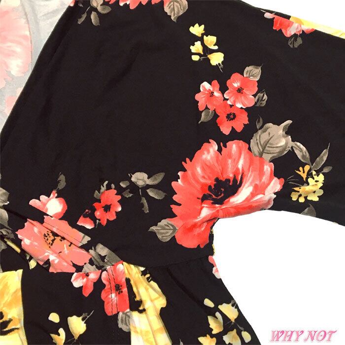 インポート 膝丈 7分袖 ドルマンスリーブ Vネック カシュクール 花柄 レイヤード ラップワンピース S.M.L ブラック from USA EM230327LA013 | インポートアパレルホワイノット