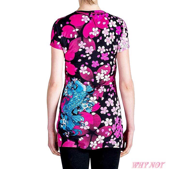 レディース Tシャツ 半袖 ラインストーン装飾 着物和プリント VirginOnly S.M.L ブラック LAインポート FROM USA VO190328LA037 | インポートアパレルホワイノット