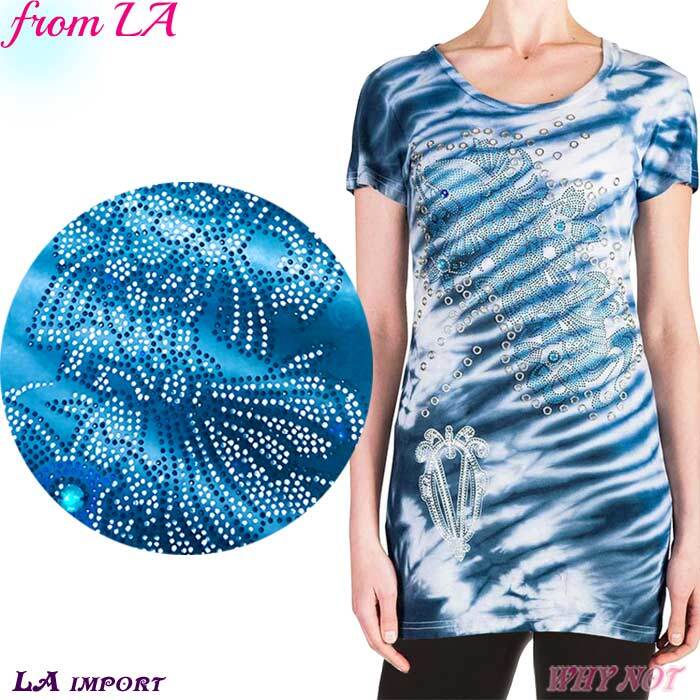 レディース Tシャツ 半袖 丸首 ラインストーン タイダイプリント VirginOnly S.M.L ブルー LAインポート FROM USA VO190308LA007ad | インポートアパレルホワイノット